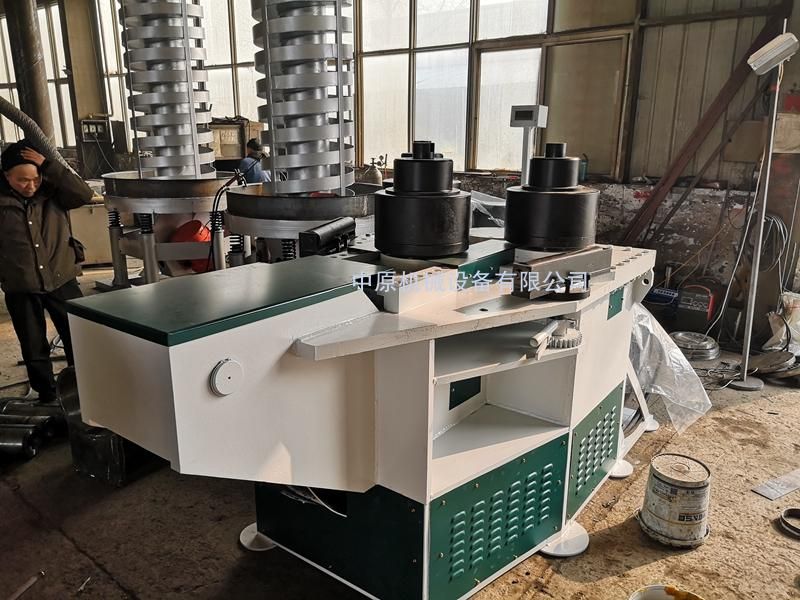 床身為一封閉式框架結構,驅動兩輥位置固定,可以進行正反方向旋轉,油缸推進模可前后移動,兩固定模的轉動為液壓傳動、由液壓馬達驅動。推進模由液壓油缸的伸縮來完成。傳動平穩、安全可靠;在固定模的兩側設有托輥裝置,托輥既可以做升降運動,也可以做旋轉運動。配合模具與導向輪同時作用有利于控制型材的卷制精度。